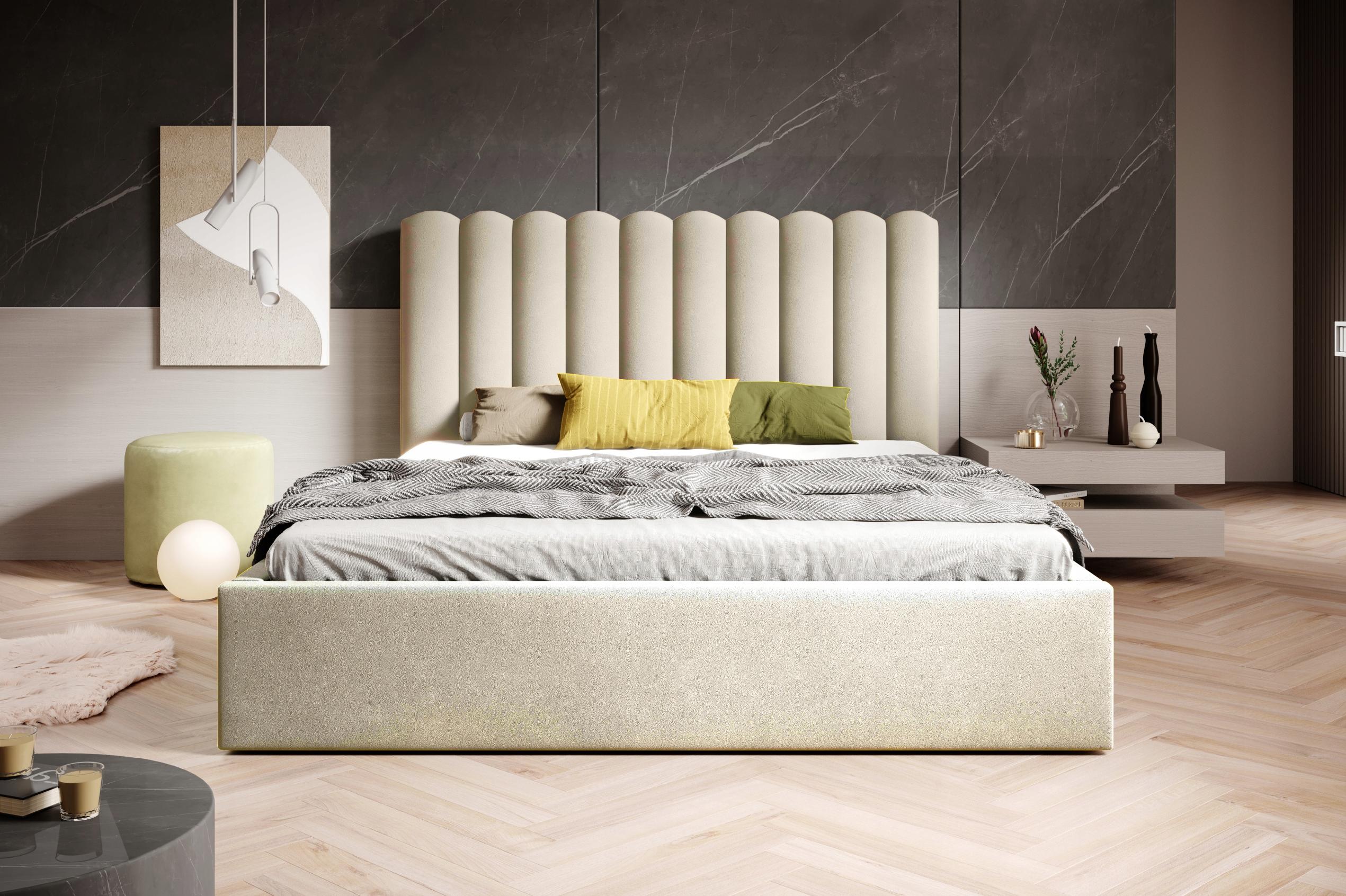 Łóżko tapicerowane Lumi 180x200 to stylowy i funkcjonalny model, idealny do każdej sypialni. Osadzone na niskich nóżkach, co nadaje mu nowoczesny i subtelny wygląd. Posiada praktyczny pojemnik na pościel, który pozwala na przechowywanie koców i poduszek, zapewniając dodatkowe miejsce do przechowywania. Łóżko sypialniane standardowo wyposażone w solidny, drewniany stelaż, który zapewnia stabilne podparcie dla materaca. Wyjątkowy zagłówek składa się z dekoracyjnych półwałków, nadając łóżku oryginalnego charakteru i elegancji. To połączenie nowoczesnego designu i wygody, które doskonale sprawdzi się w różnych aranżacjach wnętrz.