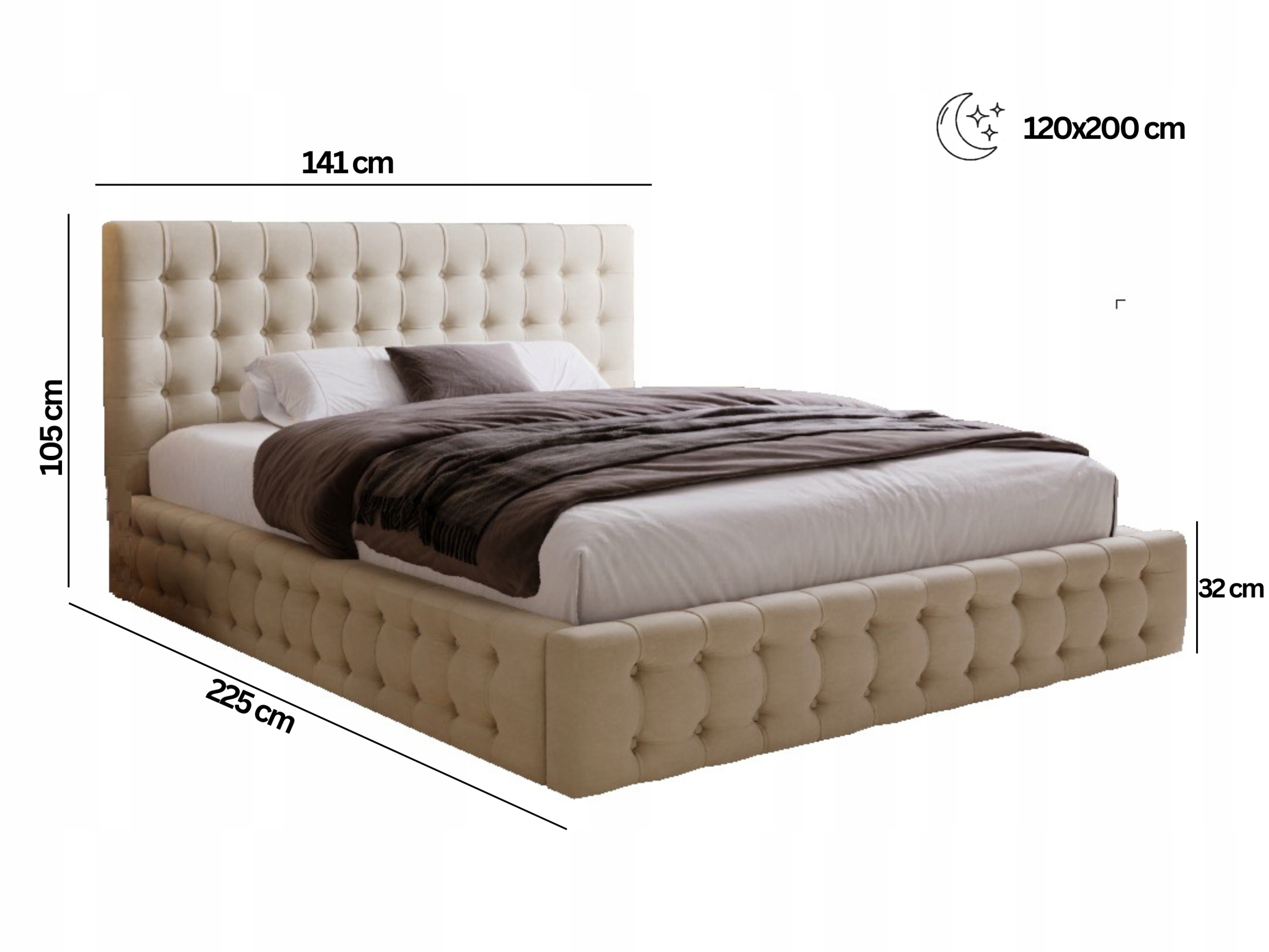 W zestawie znajduje się pojemnik na pościel oraz stelaż drewniany, który gwarantuje odpowiednie podparcie materaca i wentylację. Istnieje również możliwość dokupienia metalowego stelaża z podnośnikiem gazowym dla jeszcze większej wygody i trwałości. Łóżko tapicerowane 120x200 to idealny wybór dla osób ceniących elegancję, funkcjonalność i wysoką jakość wykonania. Pikowane łóżko do sypialni Palmo świetnie komponuje się zarówno z klasycznymi, jak i nowoczesnymi aranżacjami wnętrz, tworząc przytulną i stylową przestrzeń do odpoczynku.