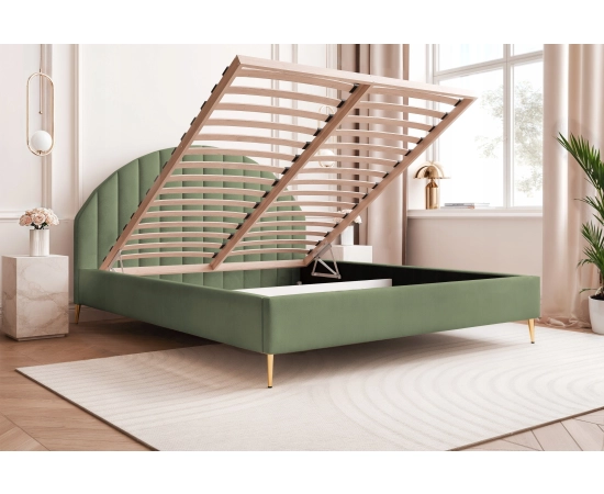 Łóżko Charlott II 140x200 to elegancka propozycja do nowoczesnej sypialni, łącząca modny design z praktycznymi rozwiązaniami. Charakterystyczne półokrągłe wezgłowie z dekoracyjnymi pionowymi paskami nadaje mu wyjątkowy styl i lekkość wizualną. Wąskie boki łóżka oraz wysokie metalowe nogi podkreślają subtelną formę mebla, a pojemnik na pościel zapewnia wygodne i funkcjonalne przechowywanie. Łóżko sypialniane zostało tapicerowane miękką i przyjemną w dotyku tkaniną, która doskonale komponuje się z nowoczesnymi aranżacjami wnętrz. Tapicerowane łóżko Charlott II 140x200 to idealne połączenie estetyki, komfortu i funkcjonalności.