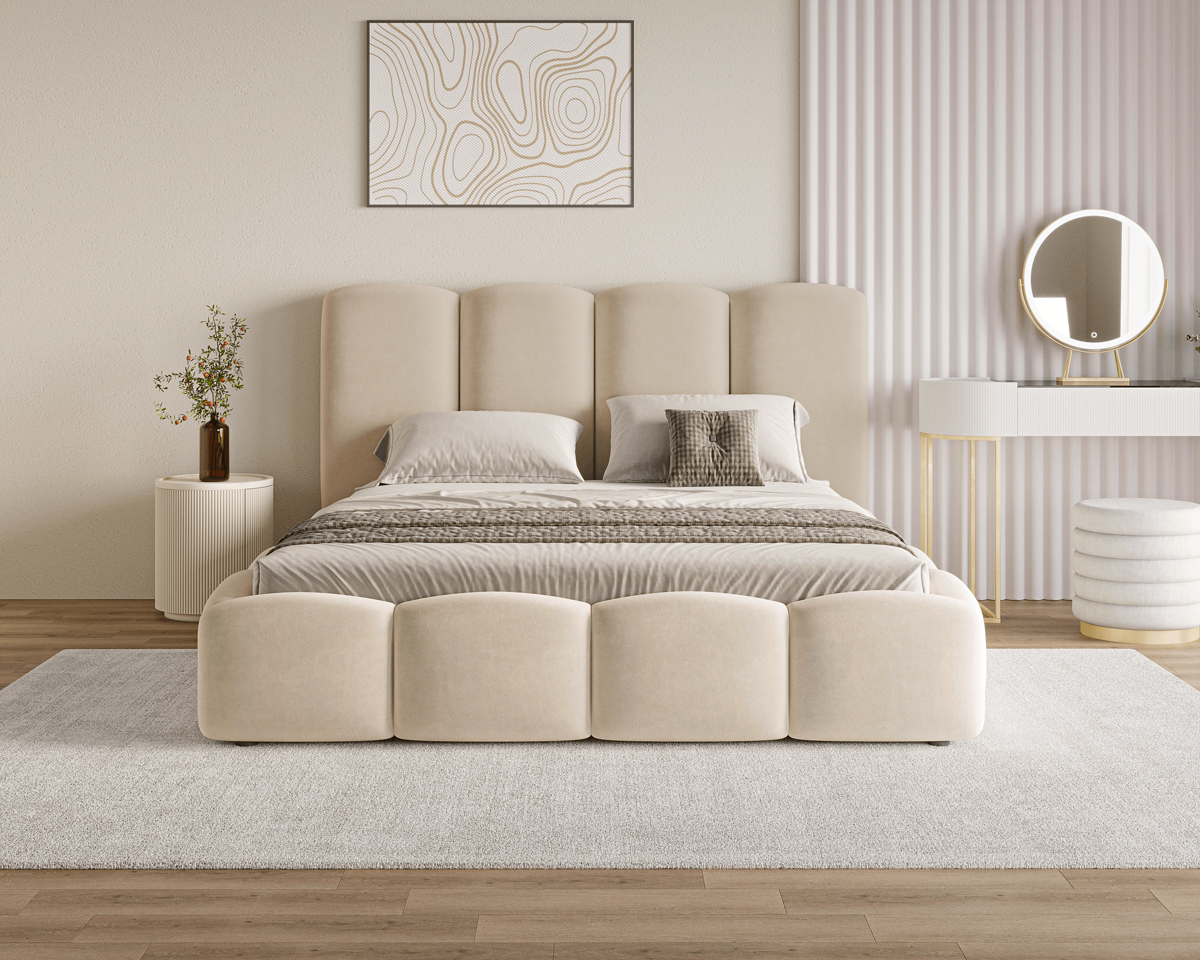 Łóżko Puffy to nowoczesna interpretacja komfortu i stylu, która wnosi do każdej sypialni wyjątkowy klimat. Jego obła, zaokrąglona forma inspirowana miękkością poduszek sprawia, że mebel prezentuje się lekko i przytulnie, a jednocześnie niezwykle nowocześnie. Tapicerowane wysokiej jakości materiałem, łóżko zapewnia trwałość i przyjemność użytkowania przez wiele lat.