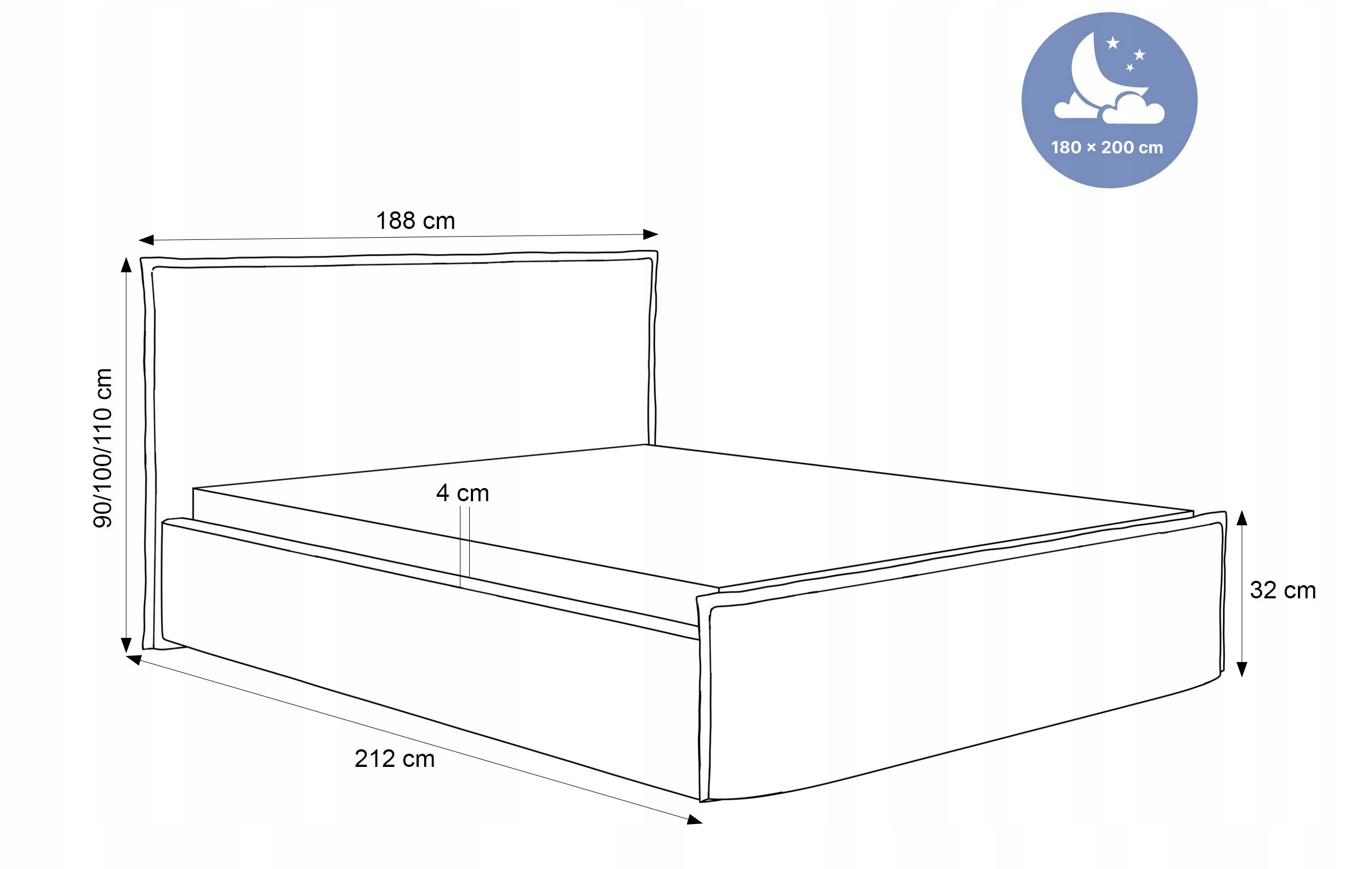 Powierzchnia spania: 180x200