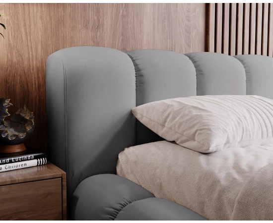 Plump to łóżko tapicerowane, które zniewala swoim wyglądem już od pierwszej sekundy. Masywna bryła jest gwarantem solidnej konstrukcji, która będzie nam służyć przez długie lata. Wezgłowie wraz z bokami i przodem mebla zostało przeszyte pionowymi liniami. Łóżko sypialniane 180 Plump to niezwykle wygodne i komfortowe łóżko. Jego niepowtarzalny design, szczególnie przykuwa uwagę. Uczucie miękkości zapewnia doskonałe chwile relaksu.
