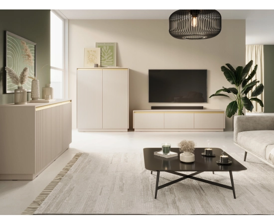 Strona główna » Meble twarde » Szafki i komody » Szafka RTV 180 cm wisząca/stojąca z ryflowanymi frontami LAMI beżowa