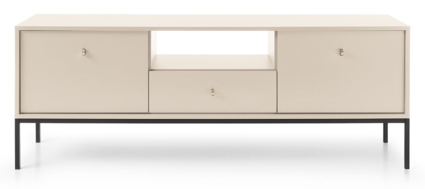 Szafka do salonu RTV z serii POLO wyposażona w dwie zamykane szafki oraz szufladę i otwartą komorę. Stanowić będzie idealne uzupełnienie aranżacji wnętrza meblami z kolekcji.
