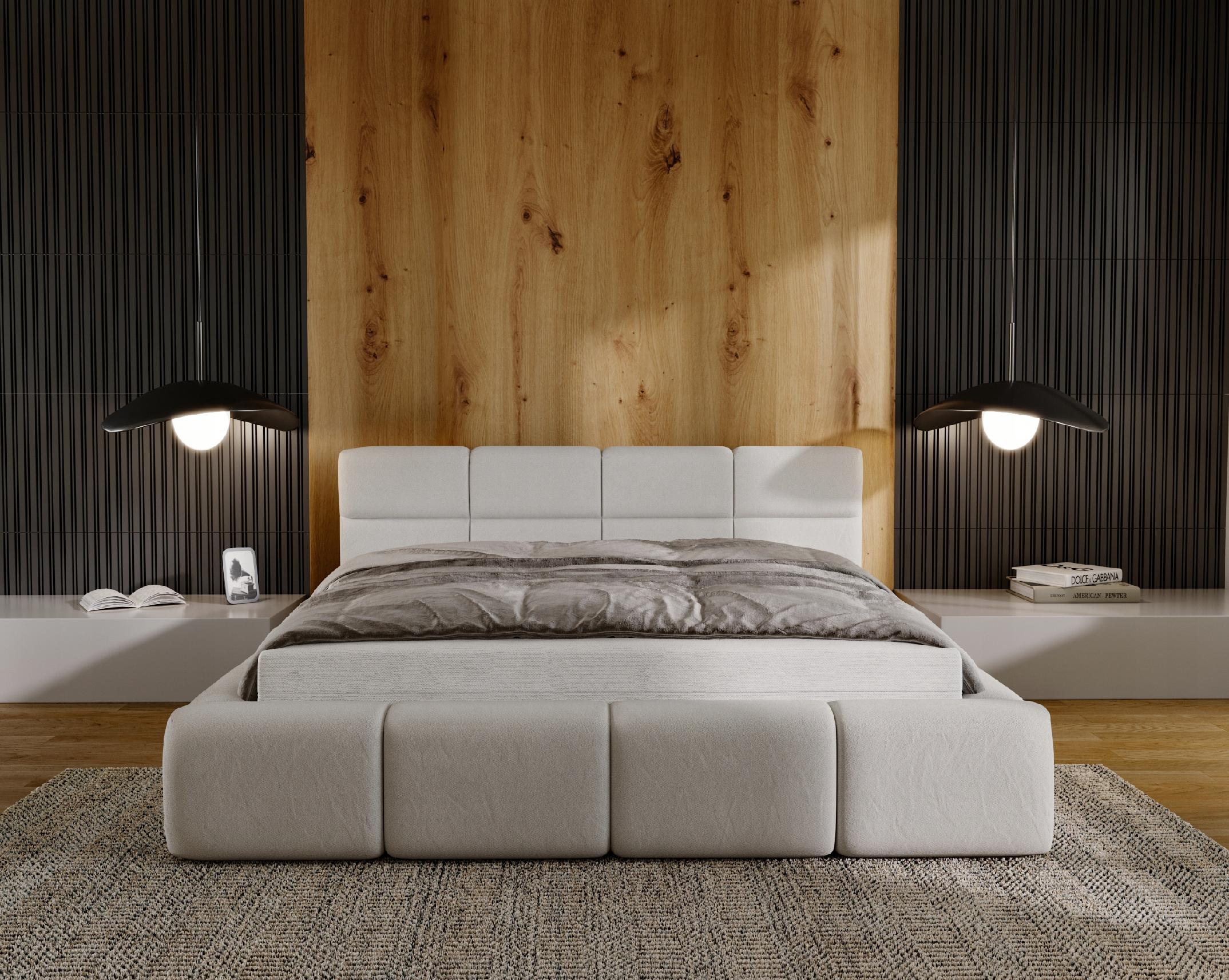 Elegancki design łóżka do sypialni Carlo jest podkreślony przez liczne przeszycia, które nadają mu nowoczesny i luksusowy wygląd. Przeszyte elementy są nie tylko ozdobą, ale także podkreślają solidność wykonania i trwałość mebla. Do produkcji zastosowano grubą piankę, która nadaje nie tylko wyjątkową wygodę, ale również piękne kształty. Pianka ta jest miękka i elastyczna, co sprawia, że spanie na tym łóżku to czysta przyjemność. Dodatkowym autem są szeroki boczki łóżka boczki na które można położyć wiele różnych rzeczy np. książkę czy telefon.